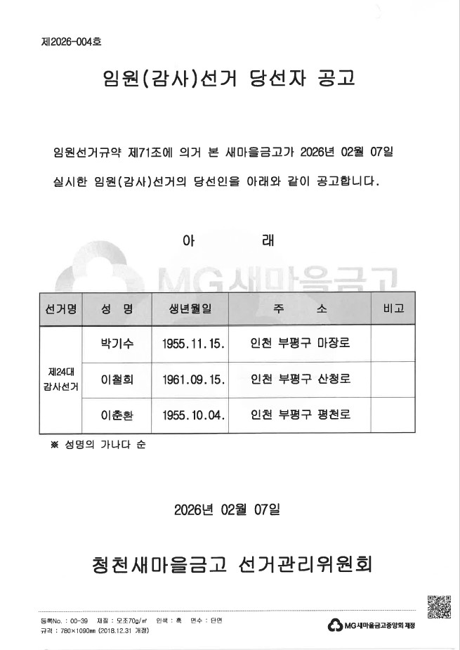 ÀÛ¼ºÀÚ : MGûõ»õ¸¶À»±Ý°í(kfcc2323@kfcc.co.kr)