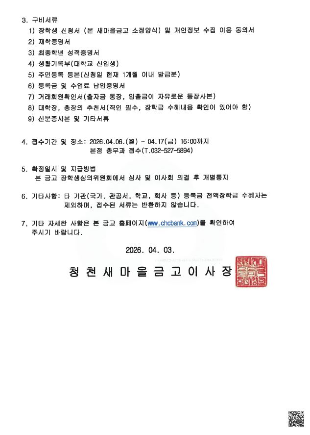 | ÀÛ¼ºÀÚ : MGûõ»õ¸¶À»±Ý°í(kfcc2323@kfcc.co.kr) ÀÛ¼ºÀÏ : 2026-04-03 | |||